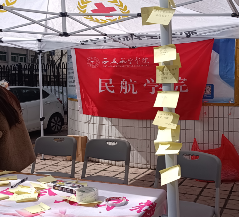 3月7日,必赢国际437官网在“航益 餐厅”门口开展以“做自己的自由树”为主题的节日活动。