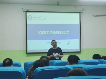 吕毅总结了学院暑假期间各项工作开展情况,介绍了走访调研、校企合作、民航大楼建设与发展有关事项,部署了学院新学期主要工作。希望全体教职工以学院高质量发展为目标,紧跟新形势,推动新发展,表示有决心和信心与全体教职工一起迈上新台阶,走向新未来。