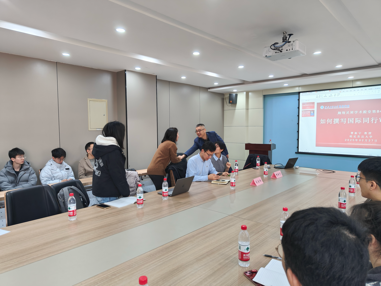 此外,曹教授与现场师生进行了生动的互动,结合具体案例详细解析了如何撰写符合国际期刊要求的论文。通过讲解和互动,参会教师受益匪浅,许多老师表示,讲座内容为他们日后的论文写作提供了宝贵的指导,特别是在如何避免论文中的常见问题和如何从审稿人的视角提升论文质量方面,大家深感受益。