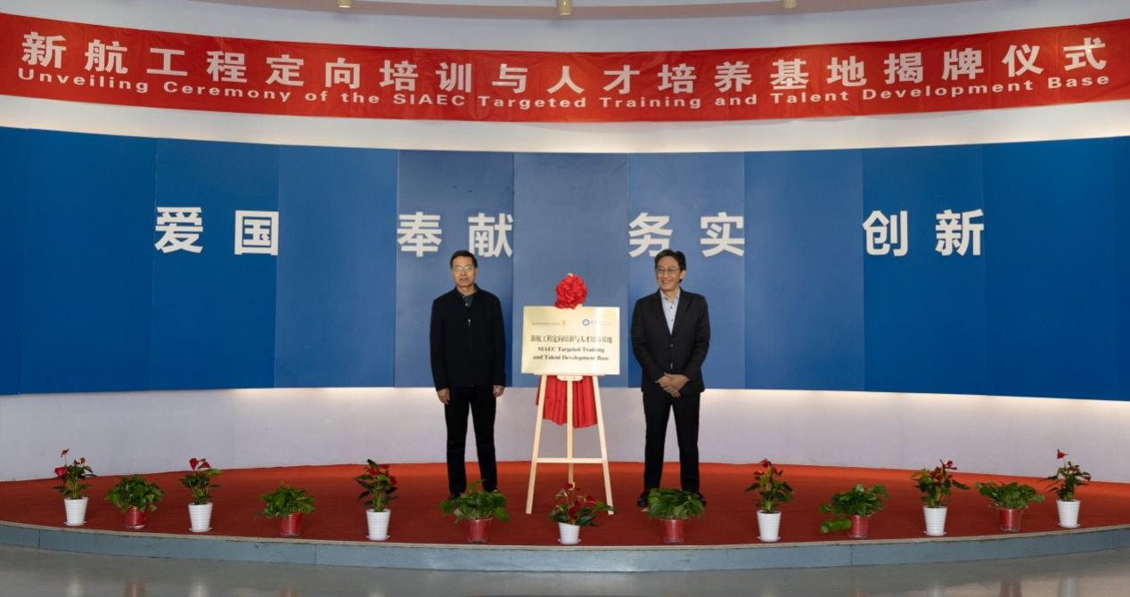 方景华与宋文学共同为“新航工程定向培养与人才培养基地”揭牌。