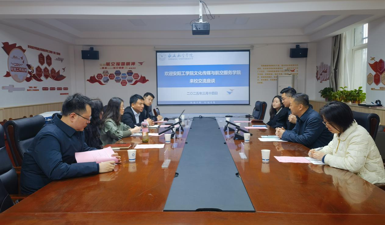 2025年3月14日上午,安阳工学院文化传媒与航空服务学院一行来校调研座谈,座谈会在教学北楼133会议室举行。文化传媒与航空服务学院副院长余锐、文化传播教研室主任王芳、辅导员韦一、教学秘书唐子烨,必赢国际437官网党总支书记丁琦、院长吕毅、副院长卢娜、学工办副主任王宏超、航空服务艺术与管理专业带头人张阳参加座谈。会议由丁琦主持。