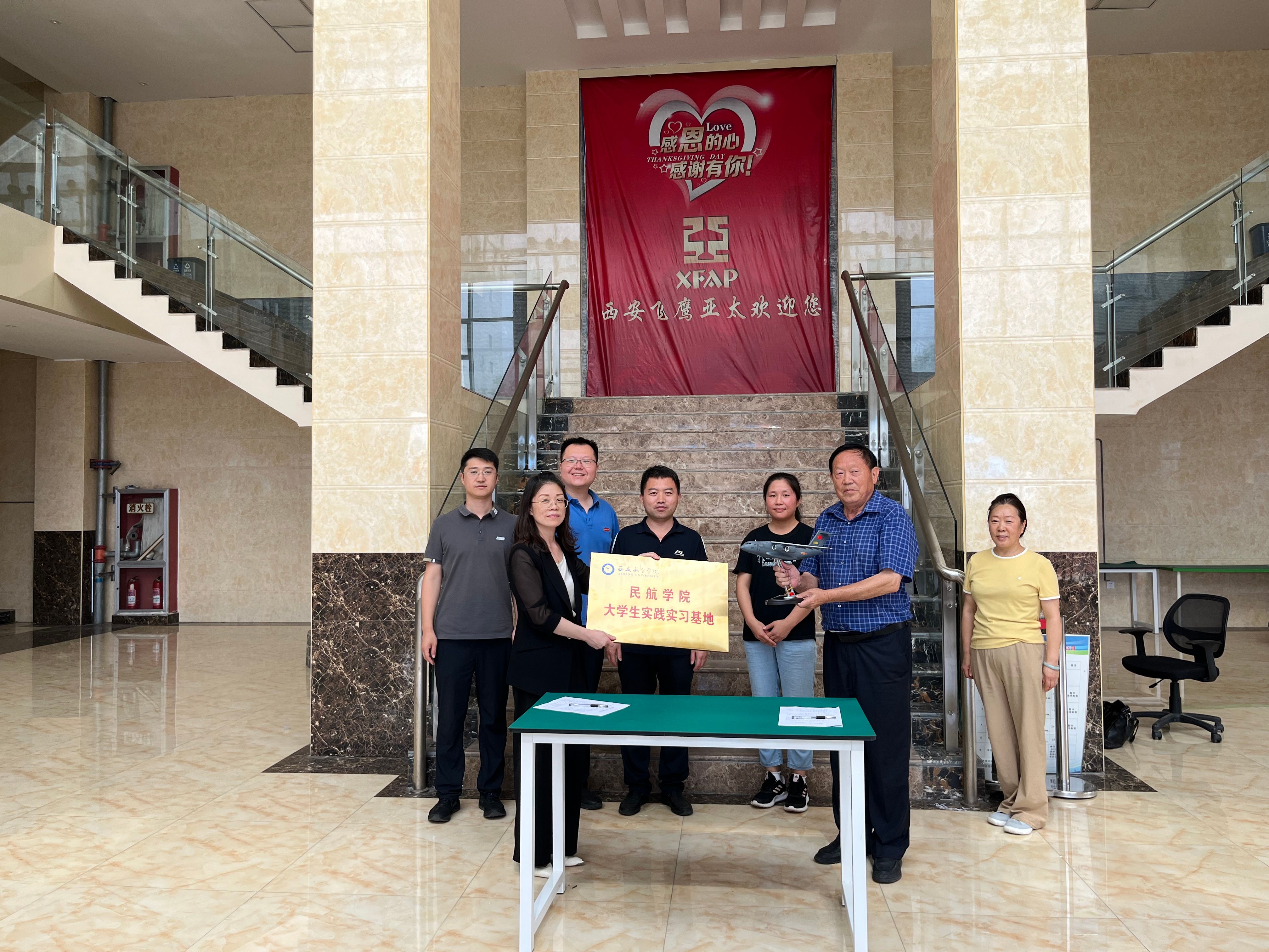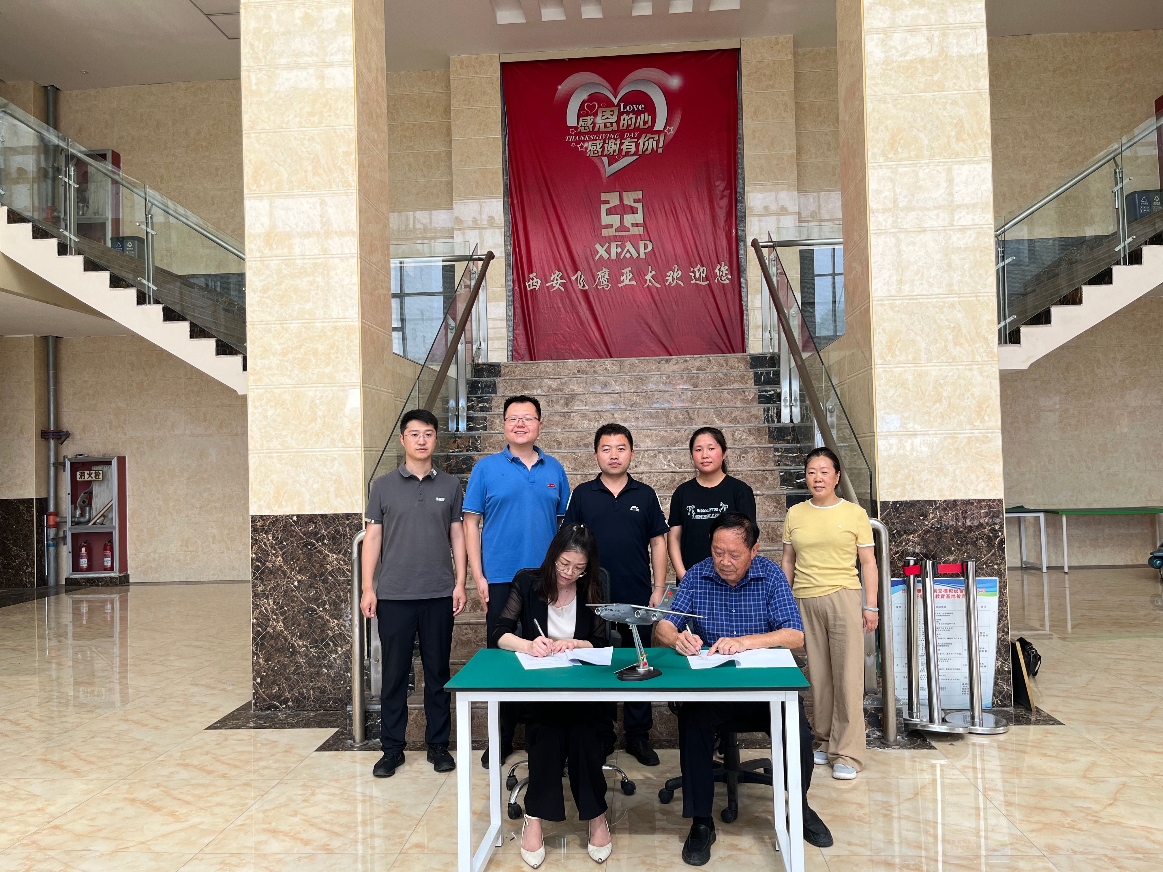 2025年7月10日,必赢国际437官网与西安飞鹰亚太航空模拟设备有限公司校企合作签约暨实习基地挂牌仪式在西安飞鹰亚太公司顺利举行。必赢国际437官网党总支书记丁琦、航空管理教研室主任寇猛、学生管理科科长王宏超、航空服务艺术与管理专业负责人张阳一行出席仪式,西安飞鹰亚太航空模拟设备有限公司总经理张宝柱代表企业方签署协议并共同揭牌。