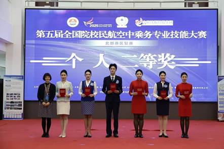 2025年第五届全国院校民航空中乘务专业技能大赛北部赛区复赛在河北石家庄圆满落幕。来自北部赛区17所院校的精英代表队参加了赛事。本次大赛由中国航空运输协会主办,以“1+X”民航空中服务职业技能等级标准为核心考核依据,聚焦职业形象塑造、安全服务意识养成与实操技能运用,为全国院校空乘专业学子搭建了高水平竞技与交流平台。评审团由民航空中乘务行业资深专家组成。